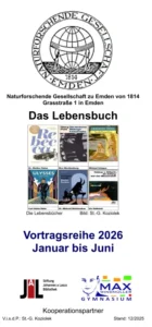 Alle Vorträge finden im Vortragssaal der Naturforschenden Gesellschaft in der Grasstraß 1 (Ecke Mühlentrifft) in Emden statt.